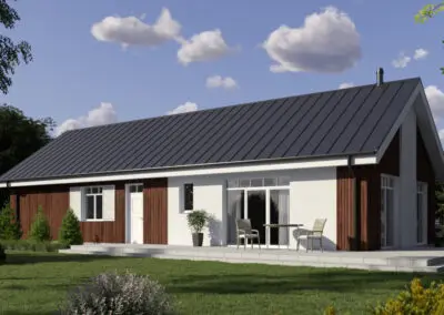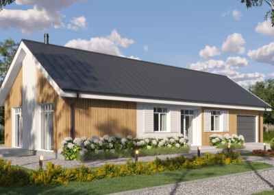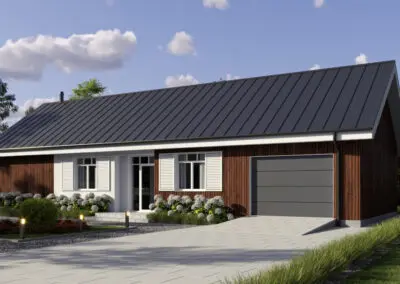 Nowoczesny drewniany dom Comfort od Woodenfactory łączy energooszczędność, ekologię i nowoczesny design. Wykonany z wysokiej jakości drewna, zapewnia niskie koszty utrzymania, komfort i zdrowy mikroklimat. To idealne rozwiązanie dla osób ceniących naturę i nowoczesne technologie budowlane..