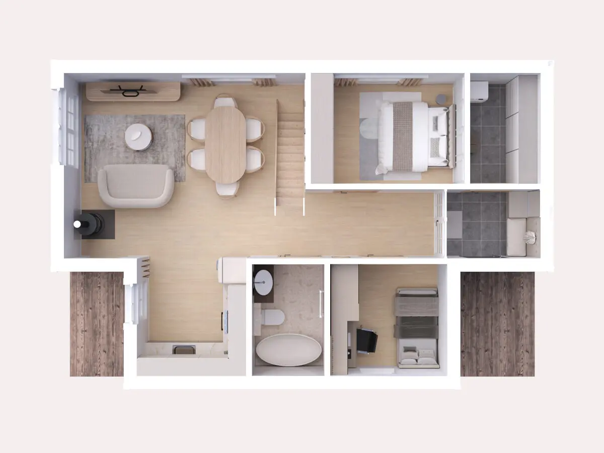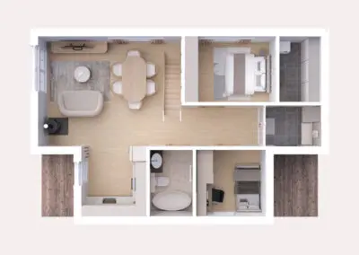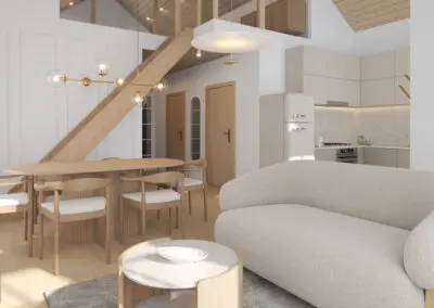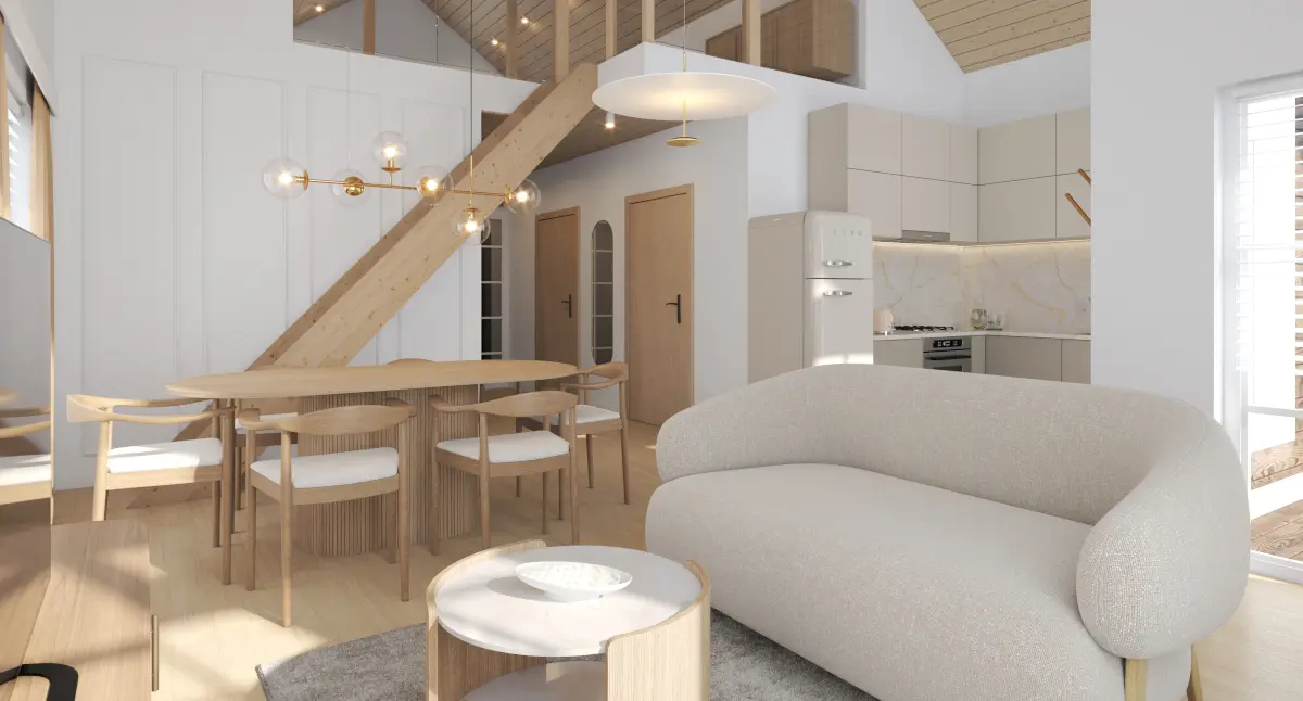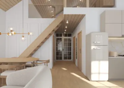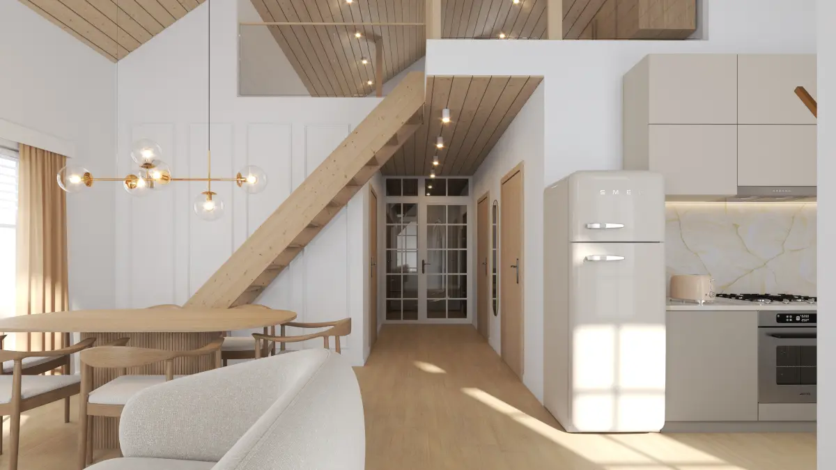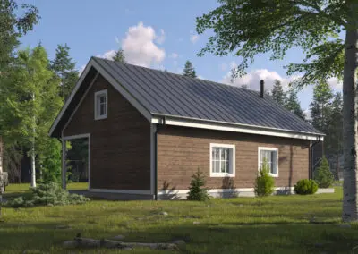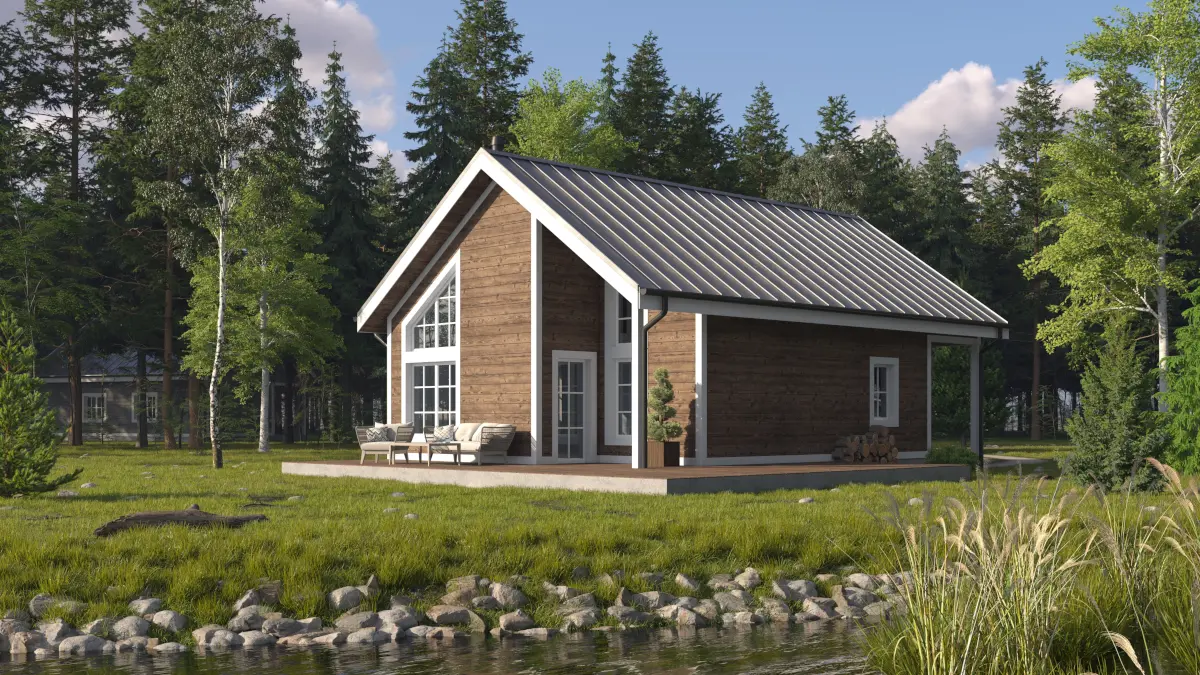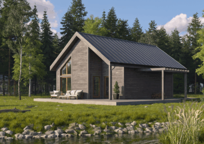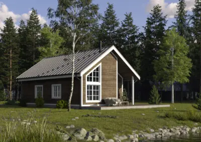 Fjord to nowoczesny dom szkieletowy drewniany o powierzchni 90 m² po podłogach. Funkcjonalny układ z przestronną antresolą, duże przeszklenia i naturalne materiały tworzą wyjątkowe miejsce do życia w zgodzie z naturą. Dom Fjord łączy nowoczesny design z tradycyjną solidnością konstrukcji szkieletowej, dzięki czemu idealnie sprawdza się jako dom całoroczny lub wakacyjny. Wybierz Fjord od Wooden Factory i ciesz się komfortem w drewnianym domu marzeń.