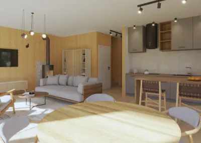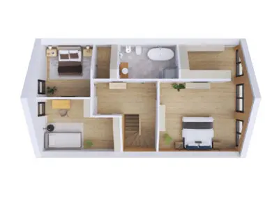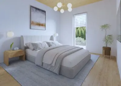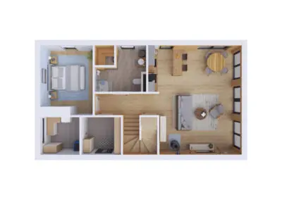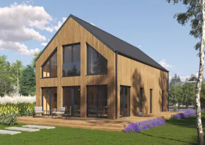 Piętrowa wersja modelu Harmony to nowoczesna stodoła zaprojektowana z myślą o 4–5 osobowej rodzinie. Oferuje 5 pokoi i 2 łazienki, zapewniając komfort i funkcjonalność na co dzień. Na parterze znajduje się otwarta strefa dzienna, a na piętrze – prywatna przestrzeń domowników. To dom, który rośnie razem z potrzebami mieszkańców i daje wiele możliwości aranżacyjnych. Styl, przestrzeń i wygoda – wszystko w jednym miejscu.